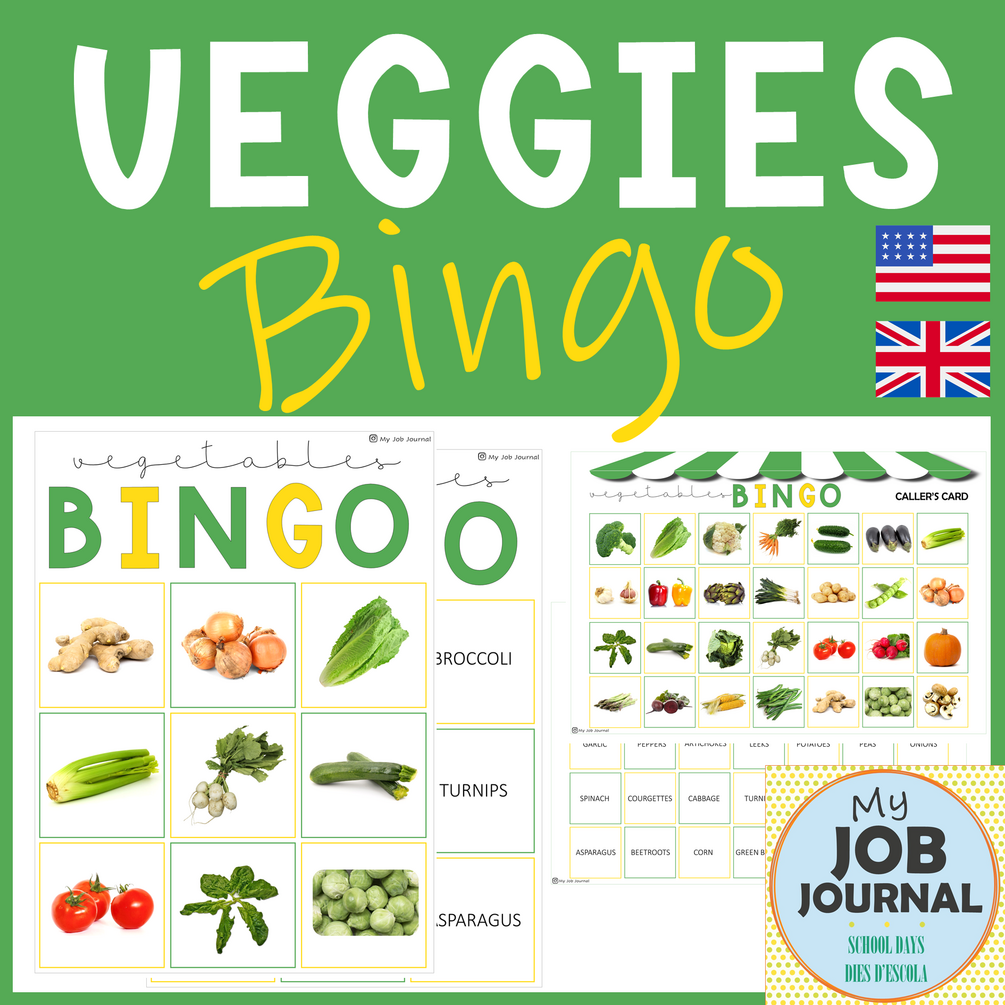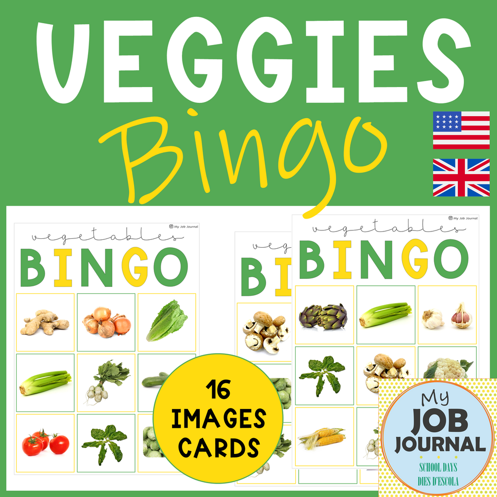 32 different Bingo Cards Veggie themed (16 images + 16 words)